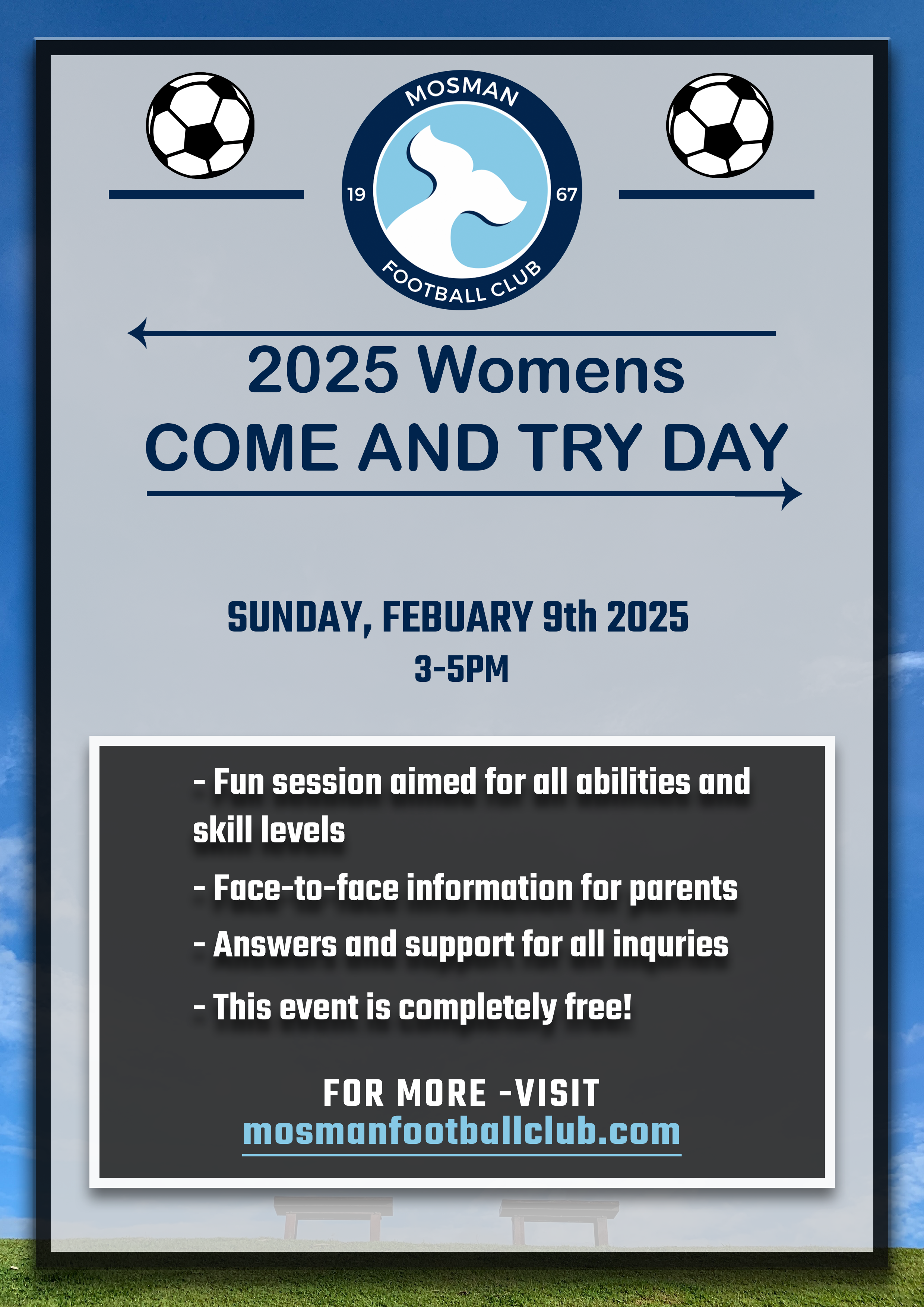 Mosman Football Club is pleased to be hosting a Come and Try Day for Women of all skill levels who are contemplating playing football (soccer) in 2025.